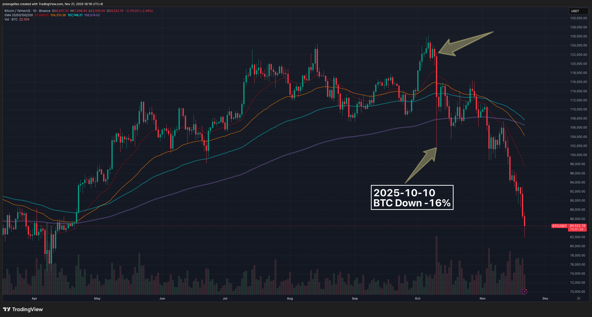 - 显性杠杆: 数字货币交易所提供的100倍永续合约杠杆,使得市场在微小的波动下就会触发大规模的强制平仓(Liquidation Cascade)。这种机制导致了“闪崩”成为常态——价格在几分钟内暴跌20%,清理掉高倍杠杆多头后迅速反弹。