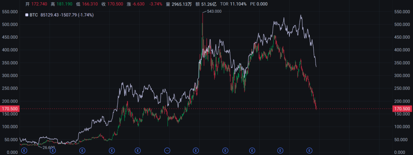 图表解释:BTC与MSTR股价对比图在观念层面,不同资产之间的“等级区隔”也在淡化。